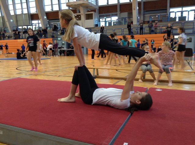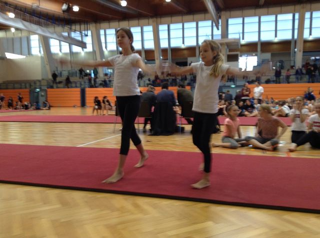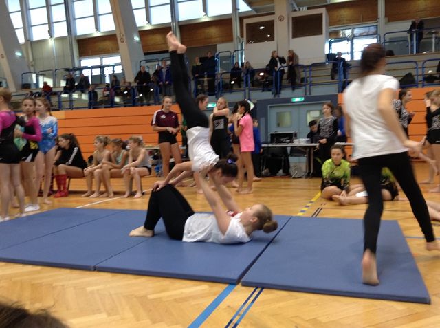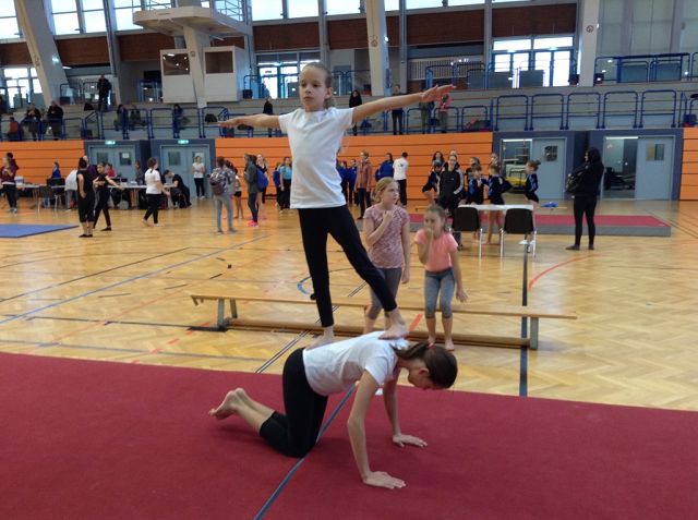 Die vorbereitete Gruppe hatte am 28.11.2018 die Möglichkeit ihr Können bei dem offiziellen Schulwettkampf „Akro 4 kids“ unter Beweis zu stellen. Die jungen Akrobatinnen waren von diesem Erlebnis so begeistert, dass sie „sofort weiter trainieren“ möchten.