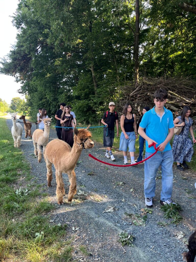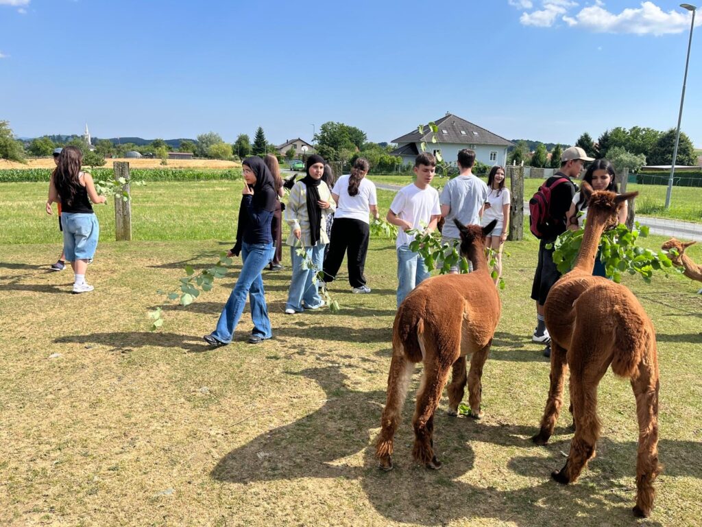 Die Schüler*innen blieben hartnäckig und erinnerten ihre Klassenvorständin immer wieder an den großen Wunsch. In der letzten Schulwoche war es dann soweit und die 4D-Klasse reiste vom 23. bis 25. Juni 2025 ins Südburgenland. Von der Unterkunft in Bad Tatzmannsdorf unternahm die Klasse Ausflüge auf die Friedensburg Schlaining, nach Oberwart und auf den Alpakahof nach Unterschützen.