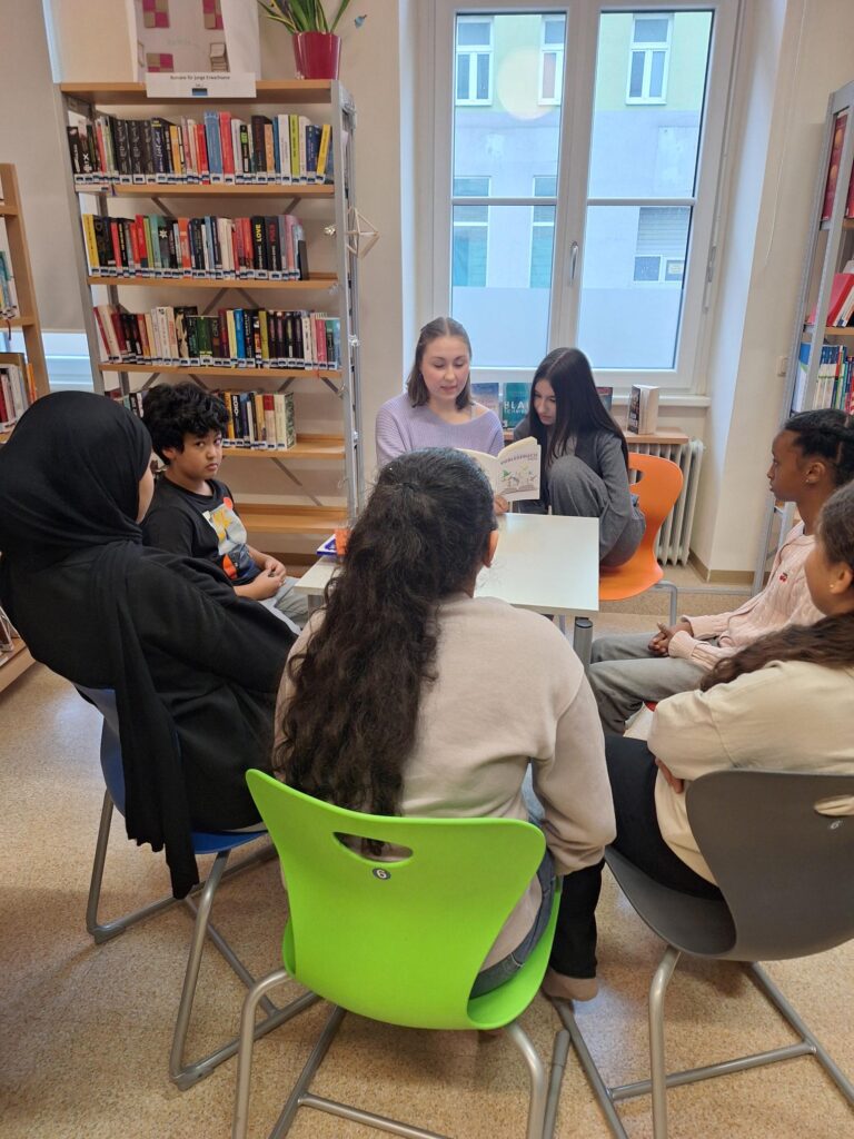 Heute war klar: In der Schulbibliothek spielt sich das echte Leben ab. Österreichischer Vorlesetag – und Phil hatte die Sache natürlich fest im Griff.